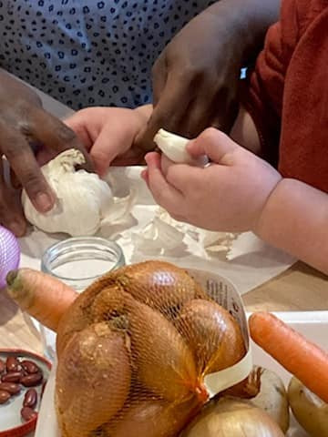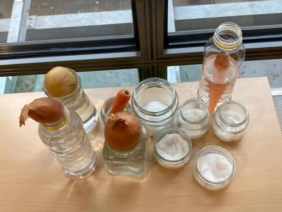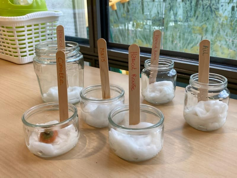 Vous êtes ici Accueil Activité zéro déchet : faire pousser des légumes chez soi à l’infini, c’est possible ! Activité zéro déchet : faire pousser des légumes chez soi à l’infini, c’est possible ! Activités 17/06/2021 Partager Facebook share Twitter LinkedIn WhatsApp Saviez-vous qu’il était possible de faire pousser ses légumes, fruits ou plantes aromatiques sans utiliser de graines ? On vous explique tout ! Certains fruits, légumes ou aromates sont capables de repousser par eux-mêmes uniquement à partir de leurs restes. Ces restes peuvent être plantés dans la terre ou plongés dans de l’eau. Nous vous proposons de découvrir la multiplication végétative grâce à Emilie, Directrice de la crèche Babilou Paris Saint-Denis qui a déjà mis en place cette technique de pousse originale au sein de son établissement, où chaque enfant a pu repartir avec sa gousse d'ail à planter chez lui avec son parent. Cette activité économique, écologique et ludique convient parfaitement aux tout-petits et permet de jardiner en famille tout en restant chez soi. Les points forts de l’activité ✨ : Sensibiliser votre tout-petit au recyclage des déchets végétaux. ? Remplir votre assiette toute l’année de bons produits ! ??? De quels légumes, fruits et objets ai-je besoin ? Fruits / Légumes / aromates : Carotte, Ail, Oignon, Pomme de terre… Pot en verre / Bouteille plastique Eau Coton Terreau Bâton de bois Potager maison : comment multiplier mes aliments ? Mise en place globale de la multiplication végétative Prendre un morceau ou germe d’un légume, fruit ou plante aromatique pour le faire pousser. Mettre le morceau ou le germe dans un récipient d’eau. L’aliment choisi peut également être mis dans son intégralité. Quelques jours plus tard, vous pourrez observer les premières pousses. Exposer le récipient d’eau près d’une source de chaleur pour favoriser la germination et produire des tiges. Enfin, vous aurez le choix de mettre en terre les nouvelles racines ou les conserver dans l’eau en veillant à changer régulièrement celle-ci pour éviter qu’elles moisissent. Patienter quelques jours pour voir naître un nouveau fruit, légume ou aromate. Astuce Afin d’accélérer la germination des morceaux de légumes, fruits, ou plantes aromatiques, vous pourrez les placer entre 2 disques de coton humidifiés, puis déposer le tout au fond d’un pot en verre. Ails, oignons, carottes, pommes de terre, haricots, aromates : comment les faire germer ? Ail : Récupérer une tête d’ail et séparer les gousses. Les mettre dans de l’eau ou au milieu de cotons humides. Astuces Planter les gousses d’ail de manière espacée dans un pot avec de la terre, le bout pointu vers le haut. Ajouter du terreau légèrement par-dessus et arroser une fois par semaine, et le mettre près d’une source lumineuse. Lorsque les tiges font environ 10 cm de haut, les couper, et laisser 3 cm environ pour qu’elles puissent repousser. Déterrer la gousse d’ail transformée en nouvelle tête d’ail quand les tiges commencent à se dessécher et brunir. Oignon : Prendre le pot en verre. Le remplir d’eau. Mettre la partie basse de l’oignon dans de l’eau. Vous pourrez également placer l’oignon en entier dans l’eau si un germe est présent. Fane de carotte : Découper et conserver uniquement le bout supérieur de la carotte. Le mettre dans le pot en verre, rempli d’eau ou de cotons humidifiés. Pomme de terre : Récupérer une petite pomme de pomme de terre et bien la nettoyer. La placer dans l’eau. Observer les racines pousser dans de l’eau et les feuilles pousser au-dessus. Astuce Mettre des cure-dents dans la pomme de terre pour la maintenir en dehors de l’eau si le récipient est large. Haricots rouges : Placer 2 ou 3 graines d’haricots entre deux cotons humides et les espacer. Aromates Pour une tige de basilic par exemple, le mettre dans un verre d’eau, sans trop immerger les feuilles. Observer les racines pousser à la base des tiges. Quand les tiges font au moins 5 cm, elles sont prêtes à être mises en terre. Plusieurs autres végétaux repoussent indéfiniment comme du céleri, des fanes de betteraves, navets, du fenouil, des champignons, de la laitue, des herbes aromatiques, de l’ananas, citron, tomate, fraise… Initiation à la multiplication végétative : quels intérêts pédagogiques ? Sensibilisation à la nature et au jardinage Découverte des fruits et légumes Expérimentation Eveil sensoriel Merci à Emilie, Directrice de la crèche Babilou Paris Saint-Denis pour ce potager d’intérieur original qui permet de sensibiliser autrement les enfants au recyclage et à la découverte d’aliments bons pour leur santé.