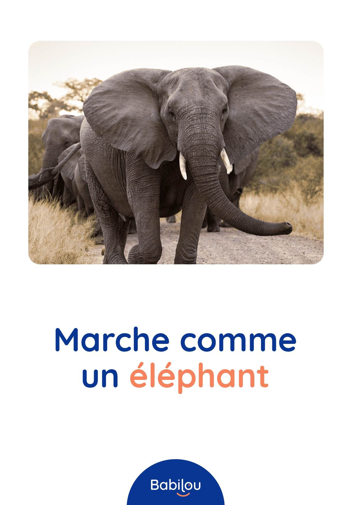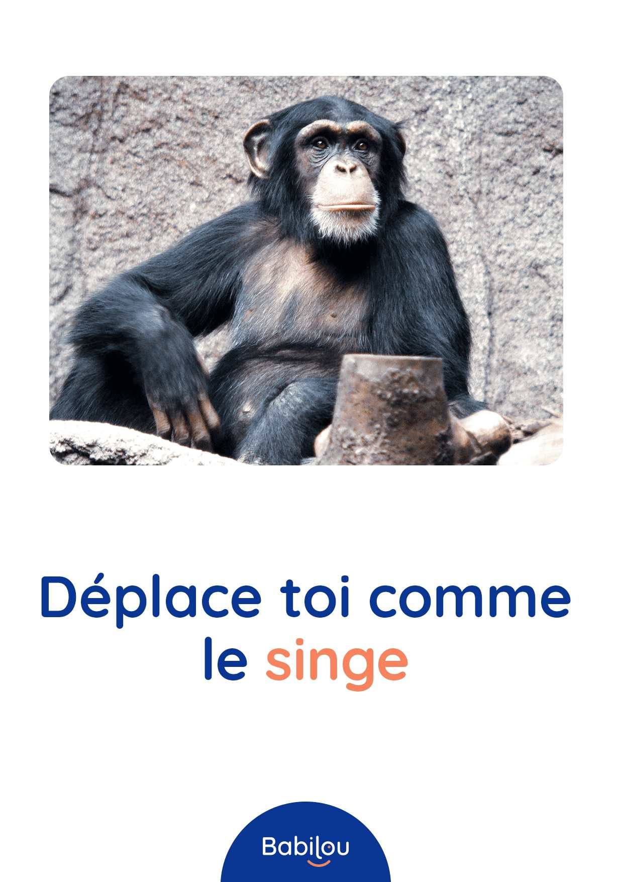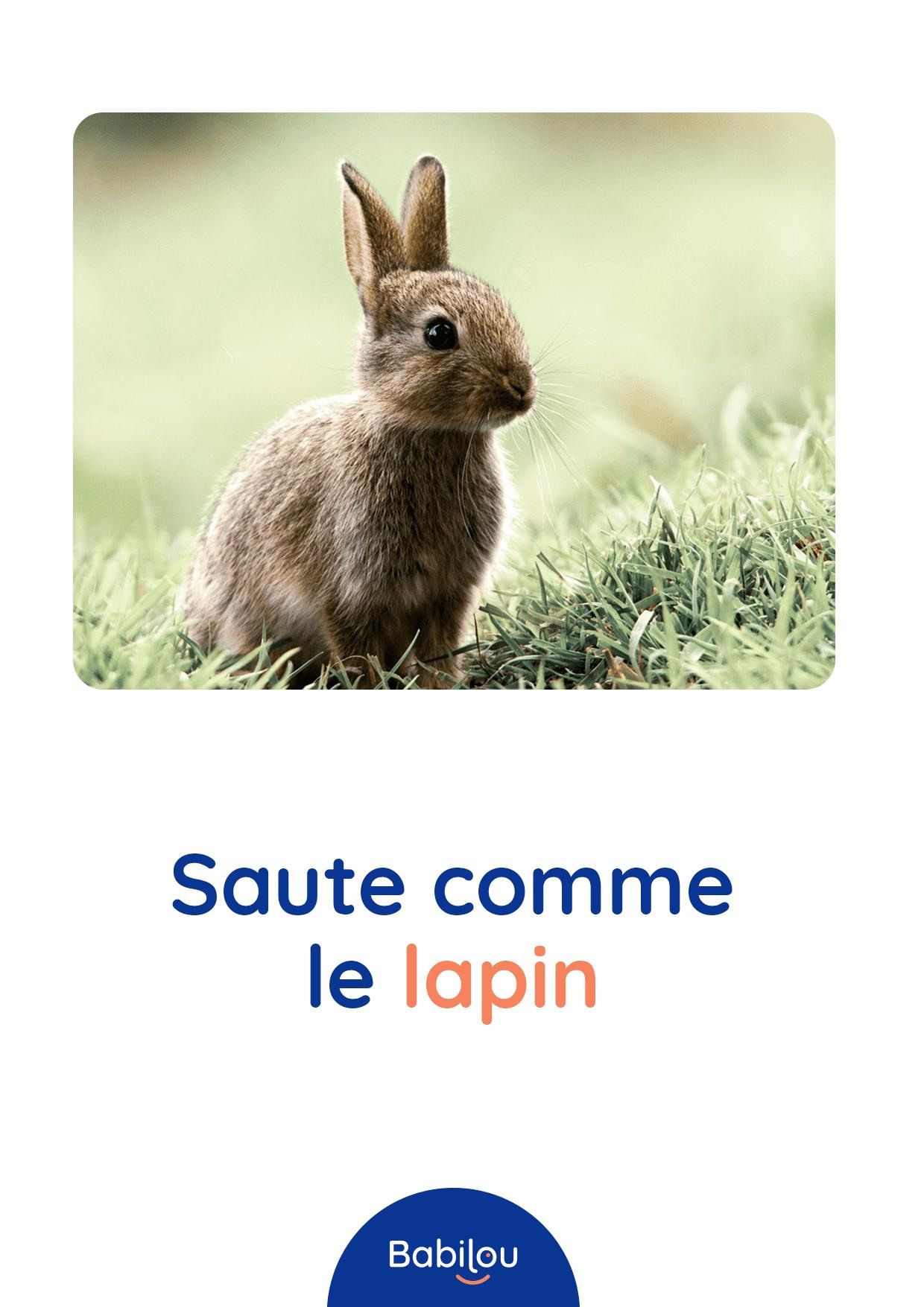 Vous êtes ici Accueil Atelier motricité des animaux Atelier motricité des animaux Activités 22/04/2020 Partager Facebook share Twitter LinkedIn WhatsApp Vous êtes à court d’idées de parcours moteurs et pour autant vous sentez que votre tout-petit a besoin de se dépenser ? Découvrez une idée d’atelier motricité très simple à mettre en place et qui plaira beaucoup à votre enfant : la motricité des animaux. Anne, Responsable Education et Qualité chez Babilou a concocté cette activité que vous pouvez varier à l’infini en fonction des animaux que préfère votre enfant. Atelier motricité des animaux : comment faire ? Ouvrez les différentes images proposées ci-dessous (vous pouvez aussi les imprimer pour les conserver) Proposez à votre enfant de réaliser l’action décrite sur chacune des cartes Laissez libre court à votre imagination et n’hésitez pas à en inventer d’autres Cet atelier permettra à votre enfant de développer sa motricité et de se dépenser mais c’est aussi l’occasion d’en apprendre plus sur les animaux. Nos propositions motrices Sauter comme un lapin Ramper comme un serpent Galoper comme un cheval Marcher comme un éléphant Sauter comme une grenouille Courir vite comme le guépard Marcher doucement comme la fourmi Marcher comme un pingouin Se déplacer comme le singe Marcher comme un canard Ramper comme le crocodile Sauter comme un kangourou Faire l’équilibre comme le flamant rose Se déplacer comme un crabe Cette activité vous a plu ? Découvrez d’autres idées d’ateliers et activités manuelles à faire avec votre enfant. Voir les activités