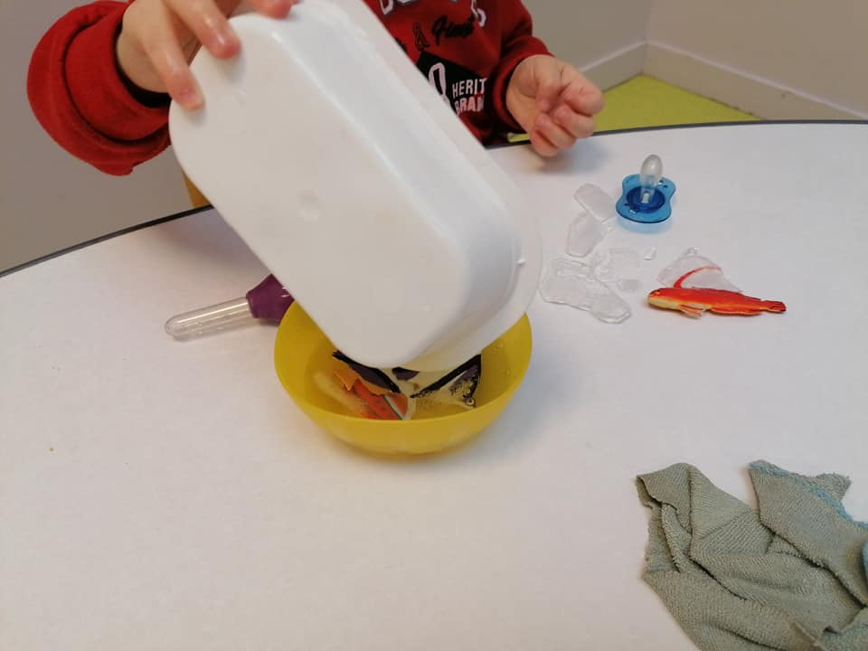 Vous êtes ici Accueil Délivrez les animaux marins pris au piège dans la glace ! Délivrez les animaux marins pris au piège dans la glace ! Activités 03/12/2021 Partager Facebook share Twitter LinkedIn WhatsApp Les jeux d’eau sont appréciés par les tout-petits, encore plus lorsqu’on explore les différents états de l’eau : liquide, solide et gazeux. Réalisez un atelier ludique essentiellement à partir d’eau glacée et de figurines de jouets d’animaux marins trouvés dans vos placards. Pour les tout-petits qui adorent les sensations de l’hiver, cet atelier est aussi l’occasion de ramener la fraîcheur de dehors, à l’intérieur de votre maison. Votre enfant pourra éveiller ses sens en manipulant des objets froids et prendre du plaisir à regarder la glace fondre. Jouer avec des glaçons : le matériel nécessaire Barquettes alimentaires / Bacs / Moules Figurines d’animaux : petits poissons, baleines, dauphins, étoiles de mer, crustacés… Bols Eau Sel Pipettes Comment emprisonner les figurines d’animaux dans la glace ? Rassembler les barquettes alimentaires, les bacs ou les moules. A l’intérieur, mettre les figurines d’animaux marins de votre choix : phoques, crabes, pieuvres… Verser de l’eau dans votre récipient. Mettre le tout au congélateur quelques heures. Récupérer les bols et y verser de l’eau tiède avec du sel pour favoriser la fonte des glaces. Sortir les glaçons du congélateur et mettre les bacs à la disposition de votre enfant, ainsi que des pipettes pour qu’il puisse transférer l’eau dans les barquettes. Enfin, laissez votre tout-petit manipuler les différents glaçons, essayer de libérer les animaux de la glace et observer les glaçons disparaître. Astuces Une seringue ou un vaporisateur à spray peuvent remplacer la pipette. Lors de son utilisation, votre tout-petit effectue des mouvements qui lui permettront de développer sa motricité fine car il mobilise les petits muscles de ses doigts pour faire pression. 5 activités originales avec des glaçons pour plus de plaisir ! « Expérience sensorielle hivernale : créez de la banquise ! » : familiarisez votre tout-petit aux environnements polaires et sensibilisez-le à la nature, à l’écologie et à la fonte des glaces. « Libérez les jouets prisonniers de la glace » : laissez votre tout petit prendre du plaisir à observer et faire fondre la glace pour libérer… des personnages ! Cet atelier fascinera votre tout-petit et l’accompagnera dans la découverte d’une nouvelle matière. « Activité hivernale sensorielle : stimuler l’odorat de votre enfant avec des fruits de saison ! » : éveillez l’odorat de votre enfant avec des fruits d’hiver ajoutés à l’intérieur de la glace. « Faites le plein de sensation : délivrez les fleurs de la glace ! » : émerveillez les yeux de votre tout-petit avec de la glace, des fleurs et des jolis glaçons. Un beau spectacle de fonte des glaces l’attend ! « 2 ateliers sensoriels surprenants avec de la glace et un parcours ! » : découvrez une nouvelle technique de peinture originale pour favoriser l'imagination et l’éveil des sens de votre enfant : de la peinture aux glaçons ! Manipuler et observer des glaçons : les objectifs pédagogiques Favoriser l'échange et le vocabulaire autour du champ lexical du froid et de la glace. Développer la patience, le temps que les glaçons fondent. Expérimenter les éléments. Développer la motricité fine. Merci à Audrey, Educatrice de Jeunes Enfants de la crèche Babilou Langueux Eiffel pour cette activité ludique et parfaite pour occuper les enfants à la maison. Découvrir d’autres activités