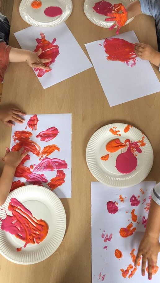 Vous êtes ici Accueil Peinture à la main : une autre manière d'exprimer sa créativité ! Peinture à la main : une autre manière d'exprimer sa créativité ! Activités 04/09/2020 Partager Facebook share Twitter LinkedIn WhatsApp Pour une activité réussie, rien de mieux que de réaliser un atelier de peinture. Cet atelier classique peut devenir original et d’autant plus ludique pour votre tout-petit lorsqu’il peint directement à la main. Testez cette activité de peinture réalisée par Alyssa, Auxiliaire Petite Enfance, et validée par les tout-petits de la crèche Babilou La Madeleine Promenades ! Atelier de peinture manuelle : quels matériaux choisir ? Quelques matériaux suffisent pour réaliser cette activité manuelle simple et très ludique. Munissez-vous de : Feuilles de papier vierges Assiettes ou récipients réutilisables Tubes de peinture de plusieurs couleurs : jaune, vert, rouge, bleu… Comment mettre en place l’atelier de peinture ? Déterminez un espace spécifique pour l’atelier : une table, un espace du jardin… Disposez les feuilles de papier sur une table. Créez des associations de couleurs dans plusieurs assiettes et placez-les sur la table. Invitez votre enfant à manipuler la peinture et la transposer sur les feuilles. Laissez votre enfant libre de son jeu en exprimant sa créativité. Astuce Variez les couleurs et les associations de couleurs que vous placez dans les assiettes pour plus de créativité ! Atelier de peinture : quels sont les bénéfices de l’activité pour les enfants ? Trois bénéfices précis sont ciblés avec cette activité : Sensoriel : votre tout-petit développe sa sensorialité grâce aux différentes textures très contrastées du papier et de la peinture. Motricité globale : en peignant votre enfant bouge ses bras et ses mains, favorisant ainsi leur réactivité motrice. L’imaginaire et la créativité : la liberté d’action et d’expression laisse votre enfant sujet à développer un univers imaginaire et développer son sens de la création. Découvrez les activités pédagogiques réalisées par les professionnels des crèches Babilou. Toutes les idées d’activités manuelles