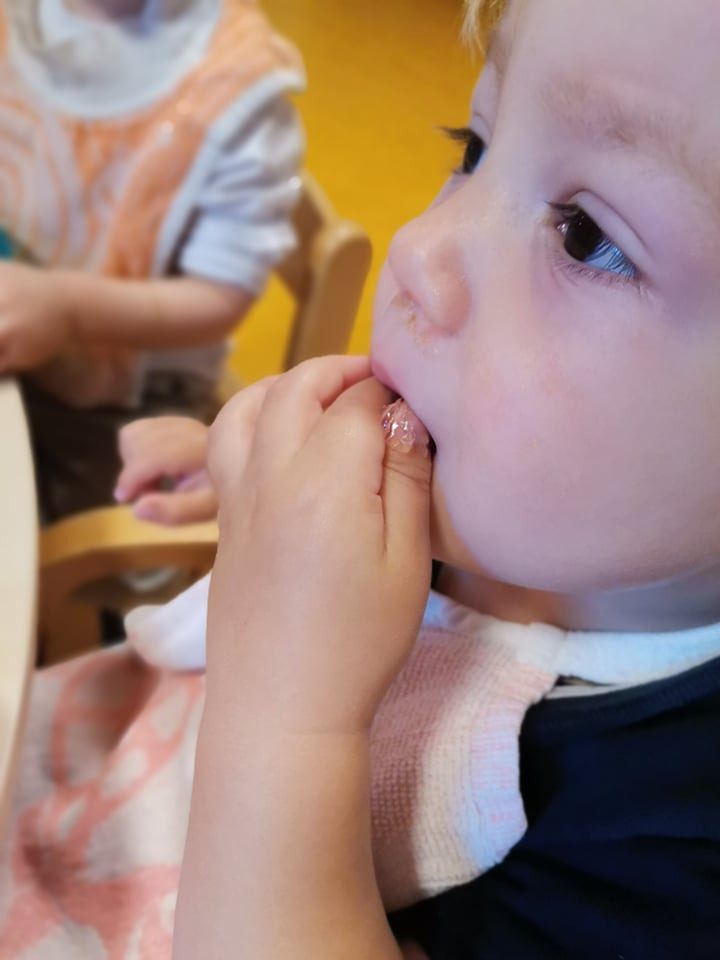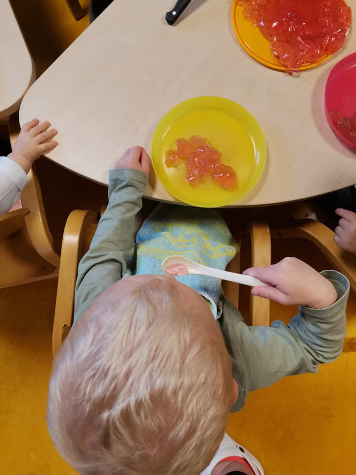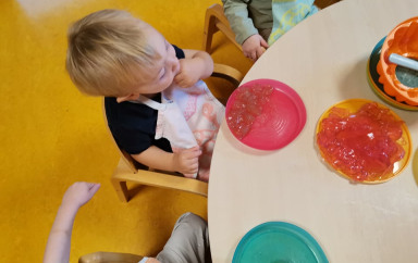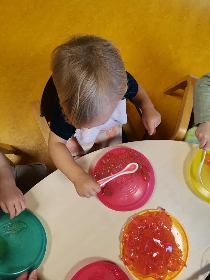 Vous êtes ici Accueil Activité sensorielle : éveillez vos papilles grâce à notre recette de gelée Activité sensorielle : éveillez vos papilles grâce à notre recette de gelée Activités 09/10/2025 Partager Facebook share Twitter LinkedIn WhatsApp Pour éviter les « je n’aime pas les épinards », ou les visages crispés amusants de votre tout-petit quand il mange du citron, goûter de nouveaux aliments de manière ludique peut être la solution idéale pour se familiariser à de nouvelles saveurs. L’éveil au goût est un processus qui se fait petit à petit et qui se prépare. Pour l’encourager dans ces découvertes, nous vous proposons de réaliser une recette de gelée « faite maison » avec différents arômes. Ateliers dégustation de gelée : les objectifs pédagogiques Découvrir de nouvelles textures et nouveaux goûts.Eveiller les sensSensibiliser les enfants à une alimentation variée.Apprendre à distinguer les saveurs. Atelier de dégustation : vos ustensiles et ingrédientsFeuilles de gélatine sans arômes Sirop de différents arômes naturels : framboises, fleur d'oranger, thé bergamote…SucreCasseroleMoulesColorants alimentaires Les étapes de la recette Rassembler en amont les ingrédients.Faire tremper les feuilles de gélatine sans arômes dans le sirop de l'arôme naturel de votre choix.Dans une casserole, faire chauffer à la fois 75cl d'eau et 70g de sucre et remuer. Laisser un peu refroidir.Egoutter les feuilles de gélatine et les mettre dans le mélange devenu tiède et remuer rapidement.Mettre dans différents moules et laisser au frigo toute une nuit.Facultatif : rajouter des colorants alimentaires. Le saviez-vous ? Le bruit influence notre perception du goût. C’est aujourd’hui prouvé par Josef Youssef et Charles Spence. Ces chercheurs de l'Université d'Oxford ont réalisé une étude qui nous révèle que notre perception du goût est liée à nos 5 sens : la vue, le toucher, l’odorat et le goût et même l’ouïe !Pourquoi ? Les résultats de l’étude montre que les ondes sonores changent les saveurs. Lorsque les notes sont plus hautes, les aliments deviennent plus sucrés, quand elles sont à de basses fréquences, le goût devient plus amer. Merci à Charlotte PREY Infirmière de la crèche Babilou Isbergues Blum pour cet atelier gustatif qui sensibilise les enfants à la diversification alimentaire. Cette activité pédagogique s’inscrit dans deux des trois forces de notre Mission Educative: « J’apprends à chaque instant » et « Je prends ma place dans le monde ». Découvrez toutes nos activités Activités Activité pédagogique : pâte à modeler parfumée à la vanille ! Article La pâte à modeler est une activité adorée des tout-petits car elle permet aux enfants de s’amuser en manipulant des textures. Et si vous faisiez appel à l’odorat de votre tout-petit ? Choisissez de Lire la suite Activités Activité bac sensoriel pour enfant : créez de la neige artificielle en 5 minutes Article Grâce à cette activité sensorielle, vous pouvez recréer un univers hivernal à la maison , avec des ingrédients comestibles mais non alimentaires . Accessible dès 1 an , il favorise leur motricité fine Lire la suite Activités Éveil sensoriel : à la découverte de nouvelles textures naturelles Article Cette semaine marque le début de l’automne, mais aussi le lancement des activités originales inspirées de ce que nous offre cette saison particulière. Quoi de mieux pour vos tout-petits que de Lire la suite
