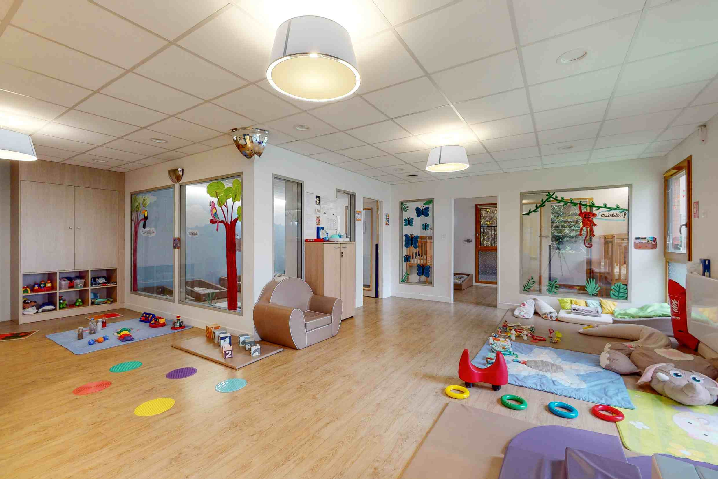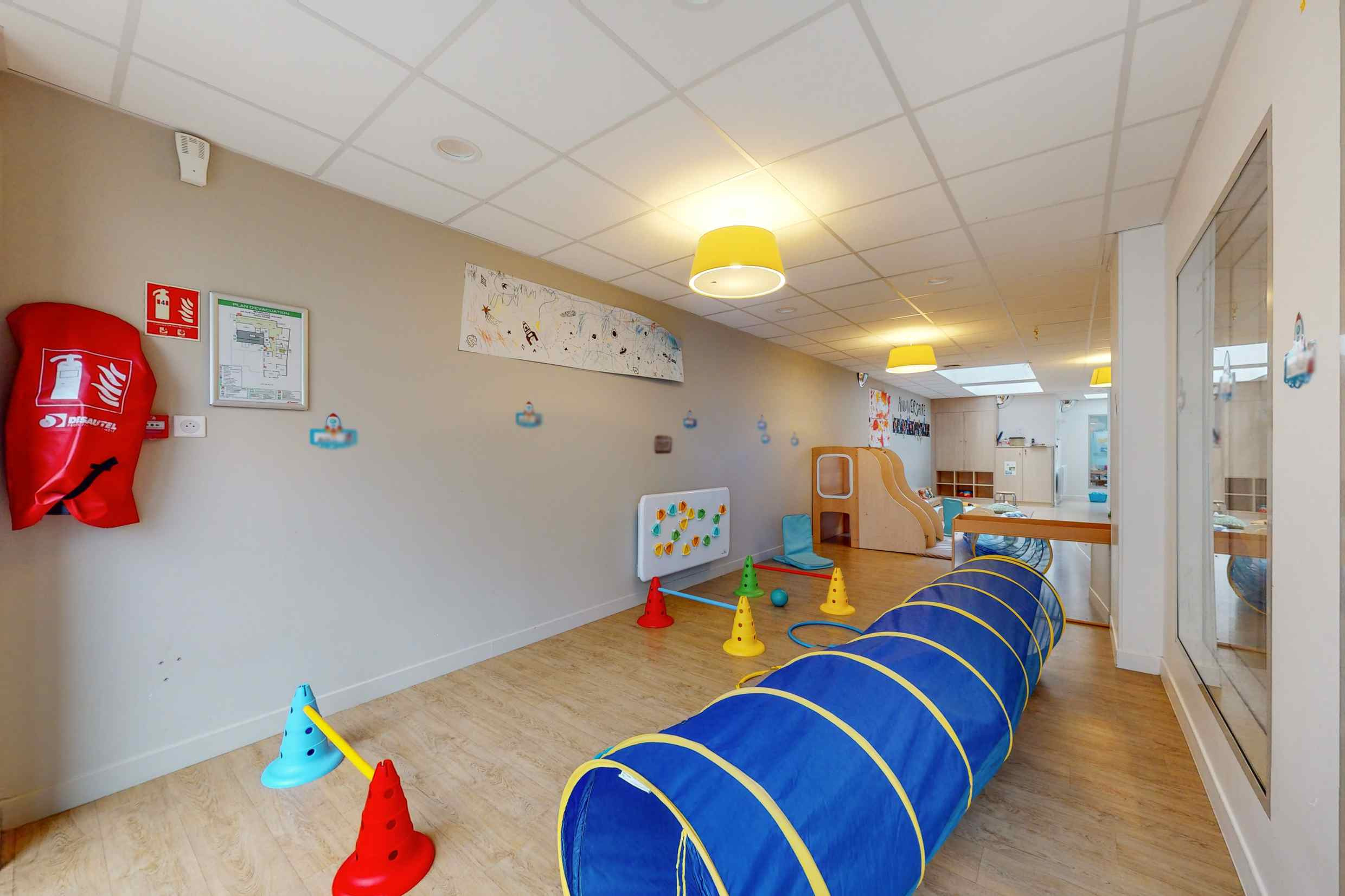 La structure propose un espace réparti en différentes zones de jeux et de repos accessibles librement : un coin dédié aux jeux d’imitation, un coin dédié à la lecture, un autre consacré aux jeux de construction...Un jardin s’ajoute à la structure et permet de réaliser des activités de plein-air lorsque la météo le permet.